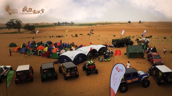 在發(fā)布會結束后第二天早晨,腳印戶外帶領百余人奔向阿拉善左旗,大巴車、越野車、后勤卡車浩浩蕩蕩,在沙漠入口處進行了分組和團建活動,并舉辦了盛大的開幕儀式。