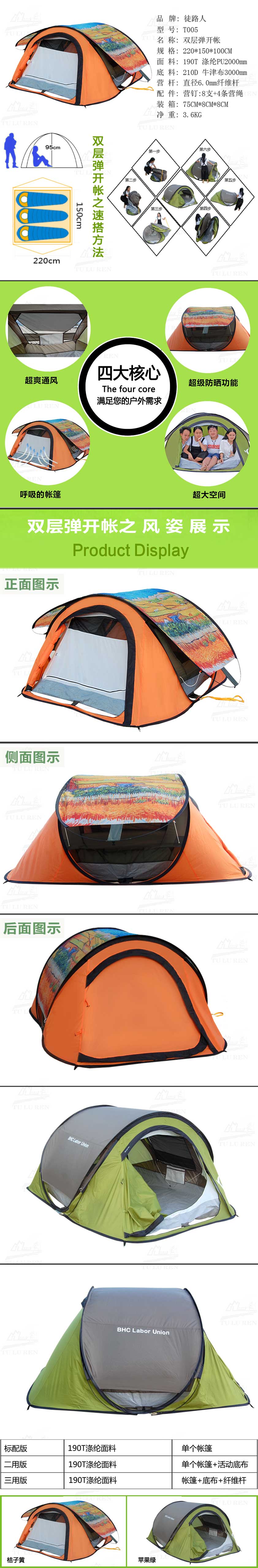 5.拉耳式設(shè)計:內(nèi)帳四角與外帳為固定式,很好的讓人快速搭建;